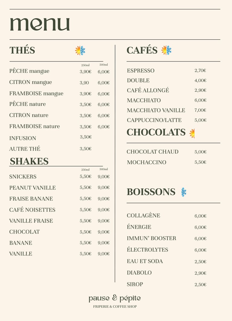 Découvrez notre menu coffee shop